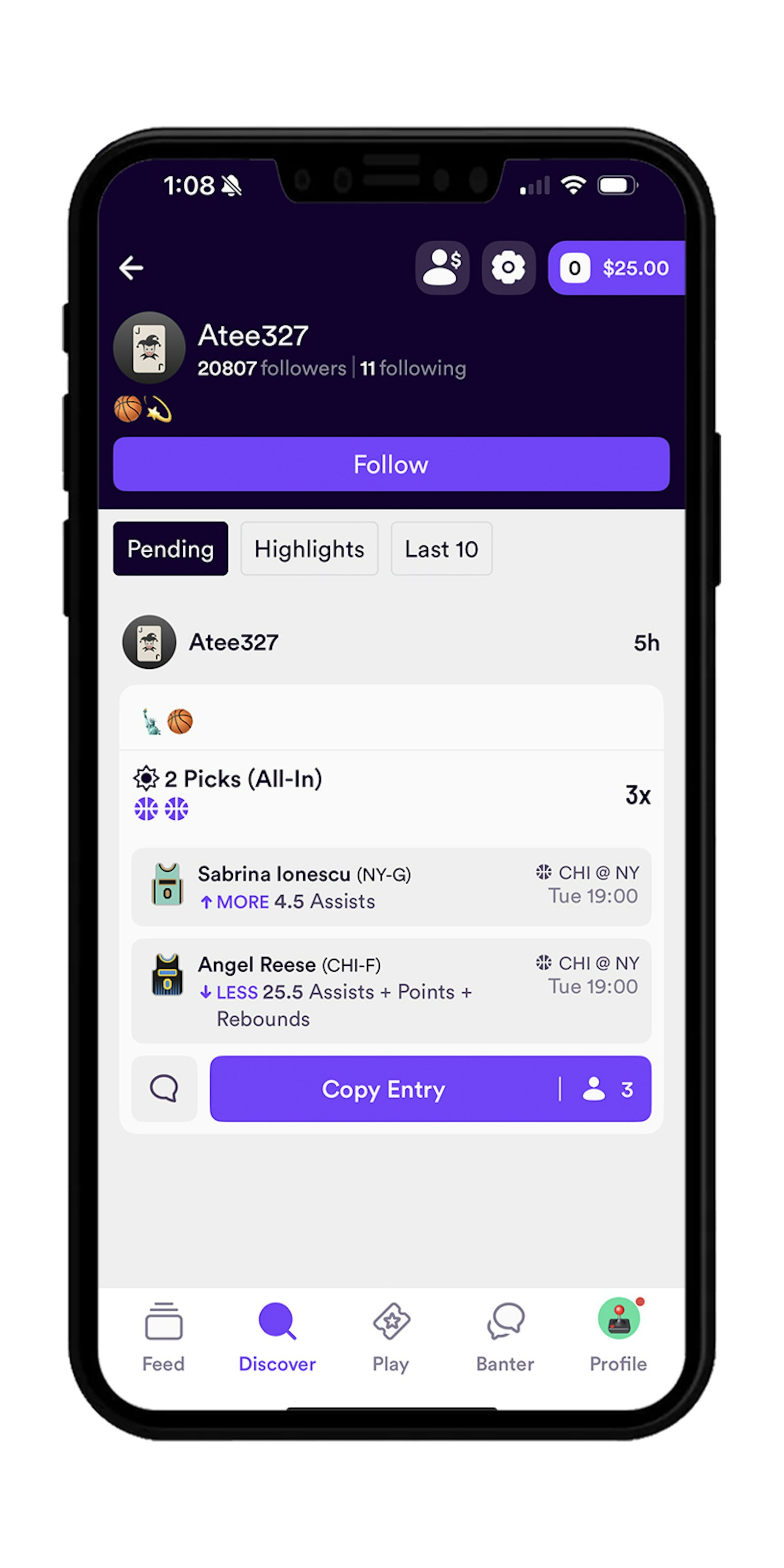 - Copy entries: If you like someone's lineup and think it's a winner, copy their picks for your own lineup.